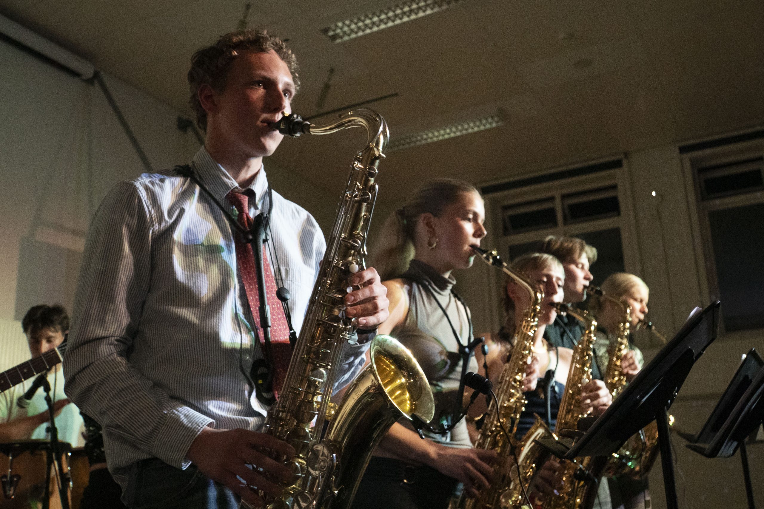 Nuværende og tidligere elever, forældre, venner og familier inviteres til at ankomme iført festgarderobe og dansesko og give den gas til sprudlende toner fra Aurehøj Bigband og Keepi Lefti.